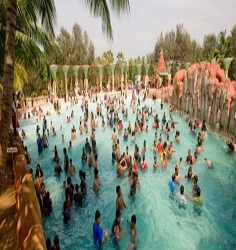 A vibrant landscape of exhilarating roller coasters, lazy rivers, and sparkling pools.