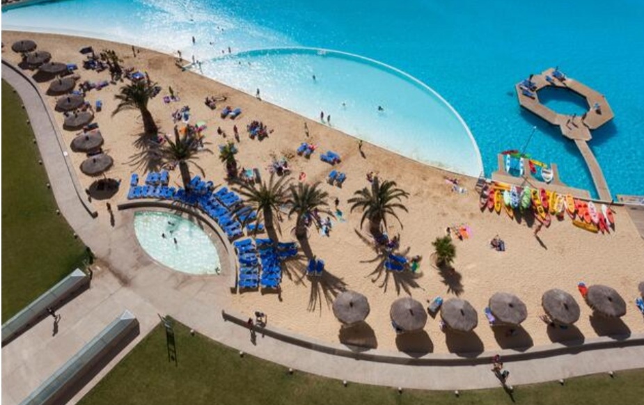 A vibrant landscape of exhilarating roller coasters, lazy rivers, and sparkling pools.